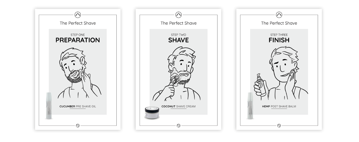 To attract potential customers walking past the salon, the client needed attention-grabbing window decals that would reflect the personality and messages of the brand. The chosen concept was the ‘perfect shave’, executed in a fun, illustrative visual style that would inspire future decals.
